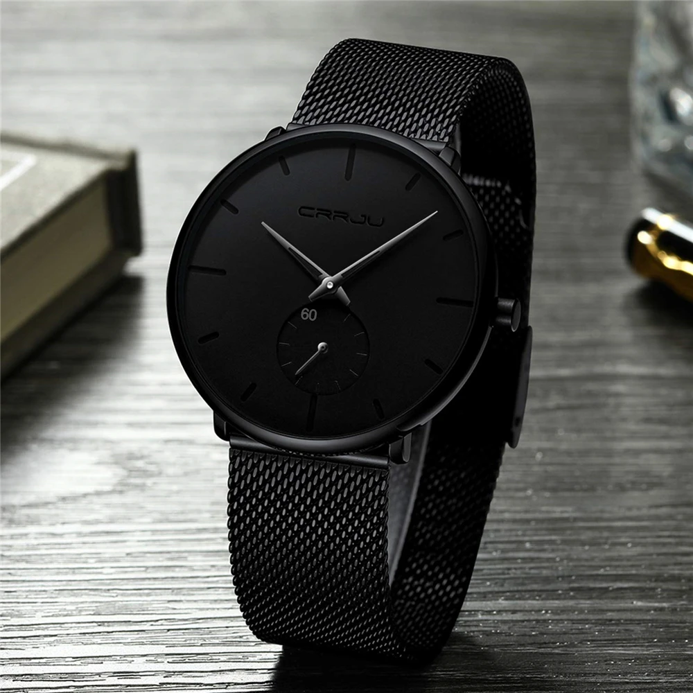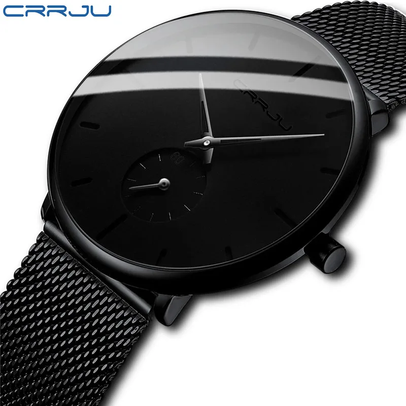 Best CRRJU 2150 Fashion men watches Top brand Causal Ultra-thin Mesh Steel Wristwatch men Black sport waterproof Quartz Watch reloj
