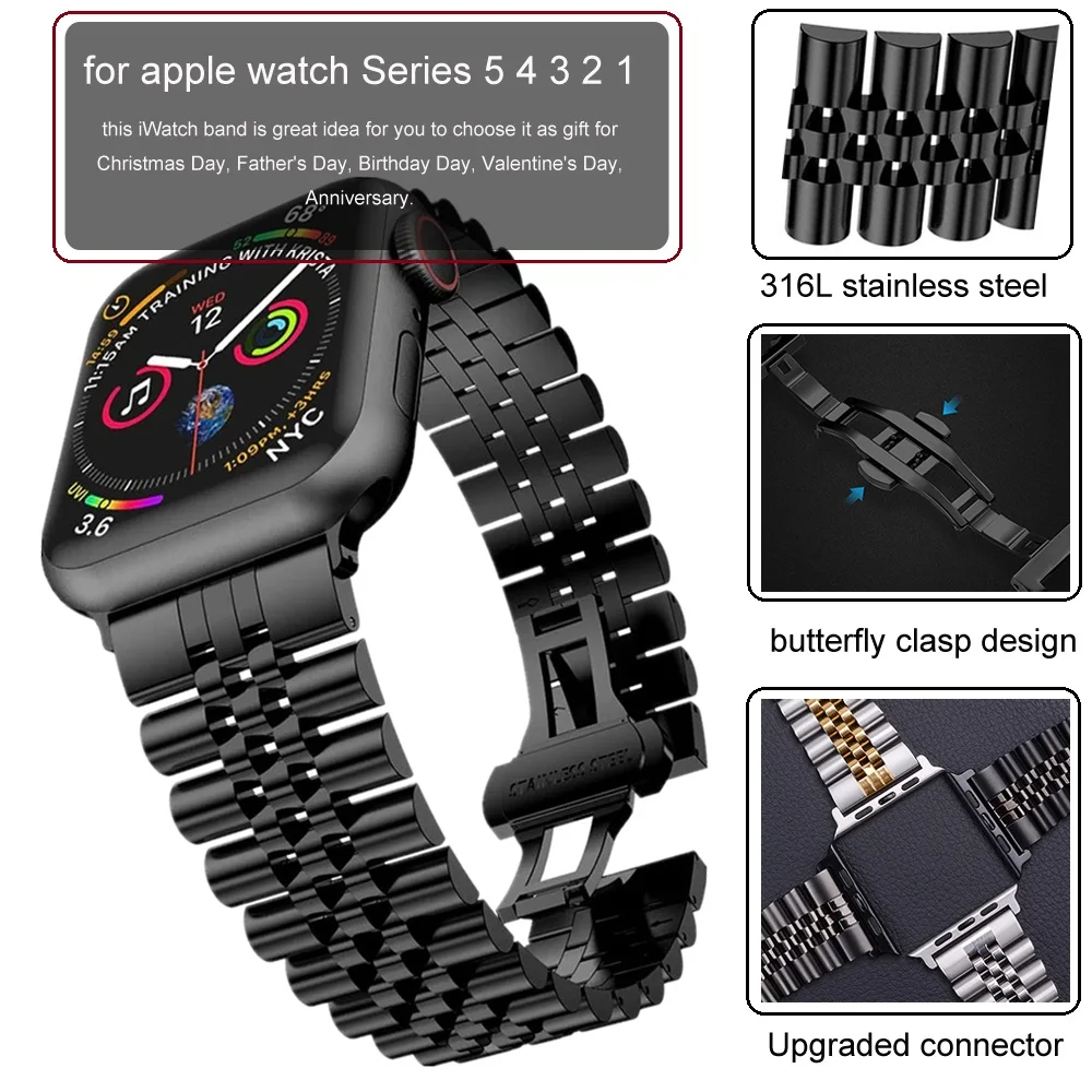 Best Price for apple Watch Band Series 5 6 SE 44mm 40mm Stainless Steel Link Bracelet for iWatch 3 bands 40mm 38mm strap men wowen pulseira
