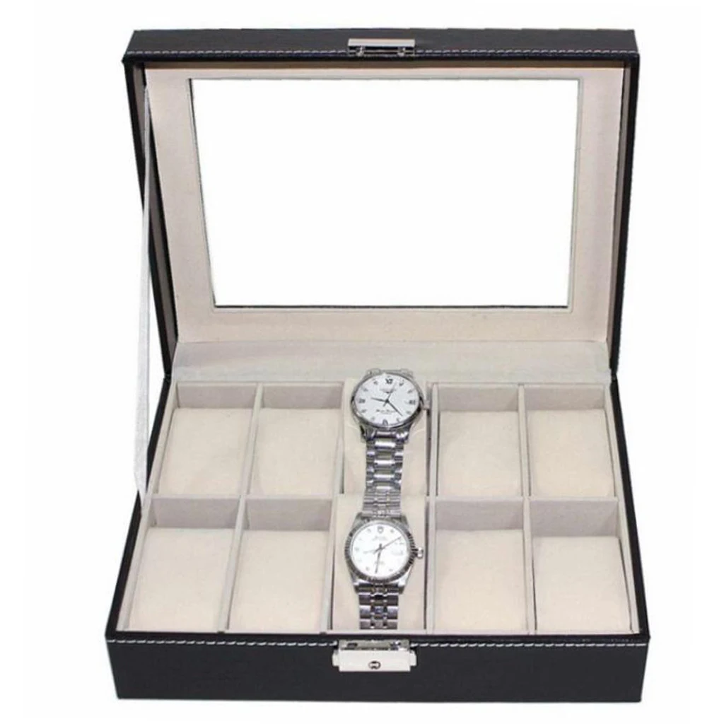 Home » Collection , Glass , Holder , Jewelry , Leather , luxury , Organizer , slots , Storage , Watch , Watches , Wooden » Cheap 10 Slots PU Leather Luxury Wooden Watch Box For Watches Men Glass Top Watch Holder Jewelry Collection Storage Watch Organizer