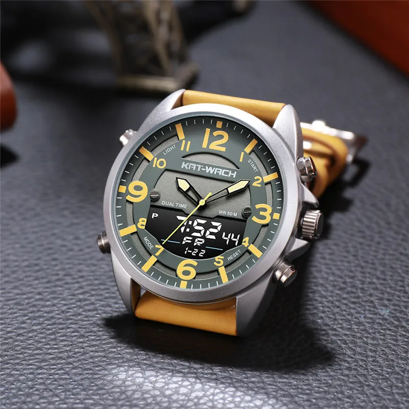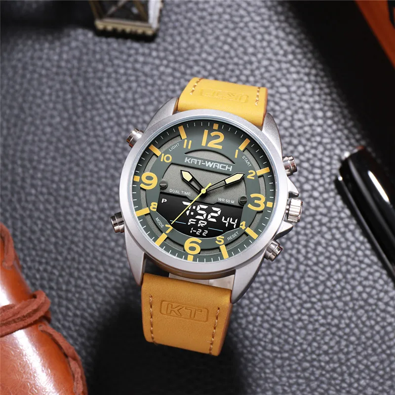 Top Seller Outdoor Men Watches Sport Digital Military Quartz Watch Male Fashion Leather Strap LED Clock Electronic Waterproof 50m