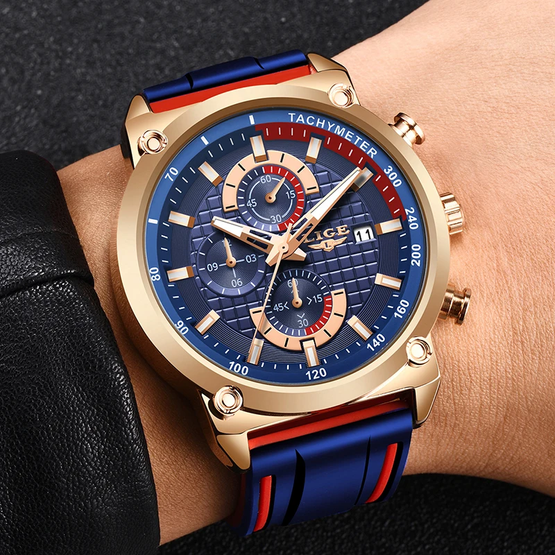Home » Brand , Chronograph , Clock , Fashion , luxury , Quartz , Silicone , Sport , Watch , Watches , Waterproof » New Arrival 2021 LIGE New Mens Watches Top Brand Luxury Dial Clock Male Fashion Silicone Waterproof Quartz Gold Watch Men Sport Chronograph