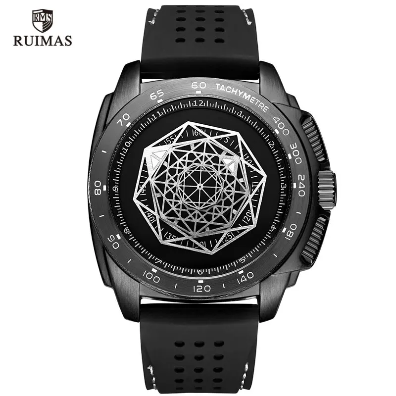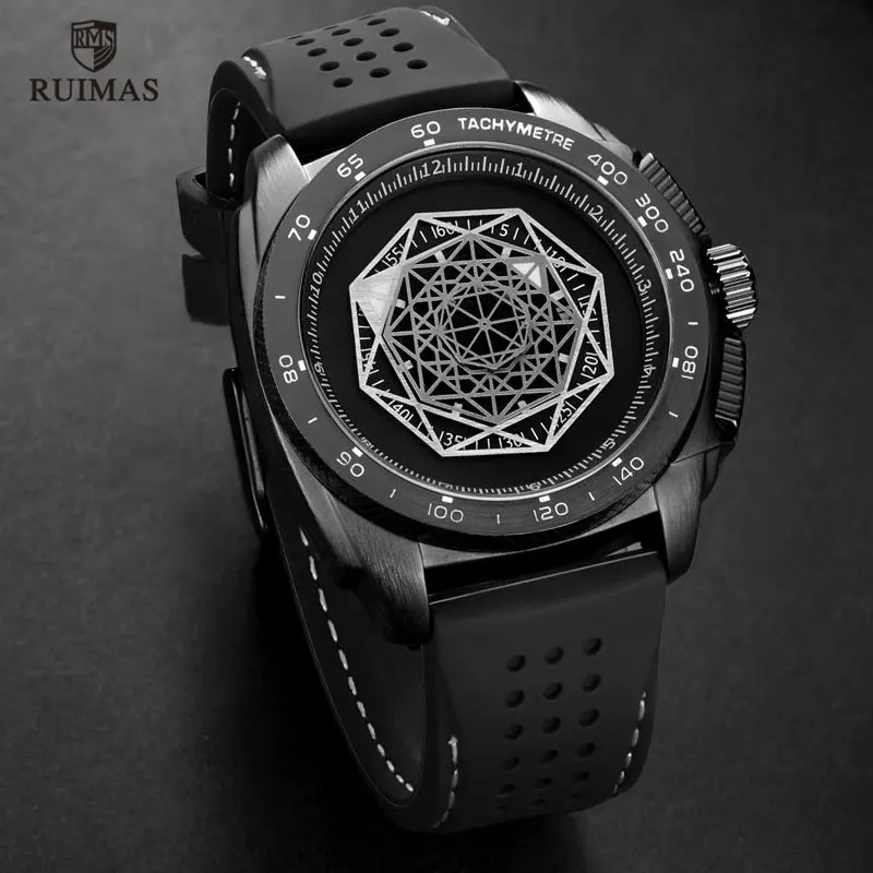 Special RUIMAS Silicone Sports Watches Men Fashion Causal Wristwatch Relogios Masculino Man Clock Luxury Army Quartz Watch 554 Black