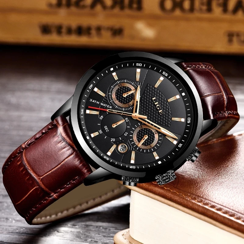 Top Seller LIGE New Mens Watches Top Brand Luxury Military Sport Watch Men Leather Waterproof Clock Quartz Wristwatch Relogio Masculino+Box